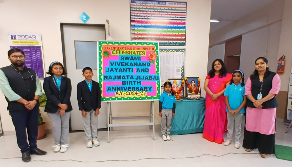 ।जदौंड -पोदार इंटरनॅशनल स्कूल दौंड राजमाता जिजाऊ व स्वामी विवेकानंद जयंती कार्यक्रमाचे आयोजन करण्यात आले होते. कार्यक्रमाची सुरुवात राजमाता जिजाऊ व स्वामी विवेकानंदांच्या प्रतिमापूजनाने झाली.