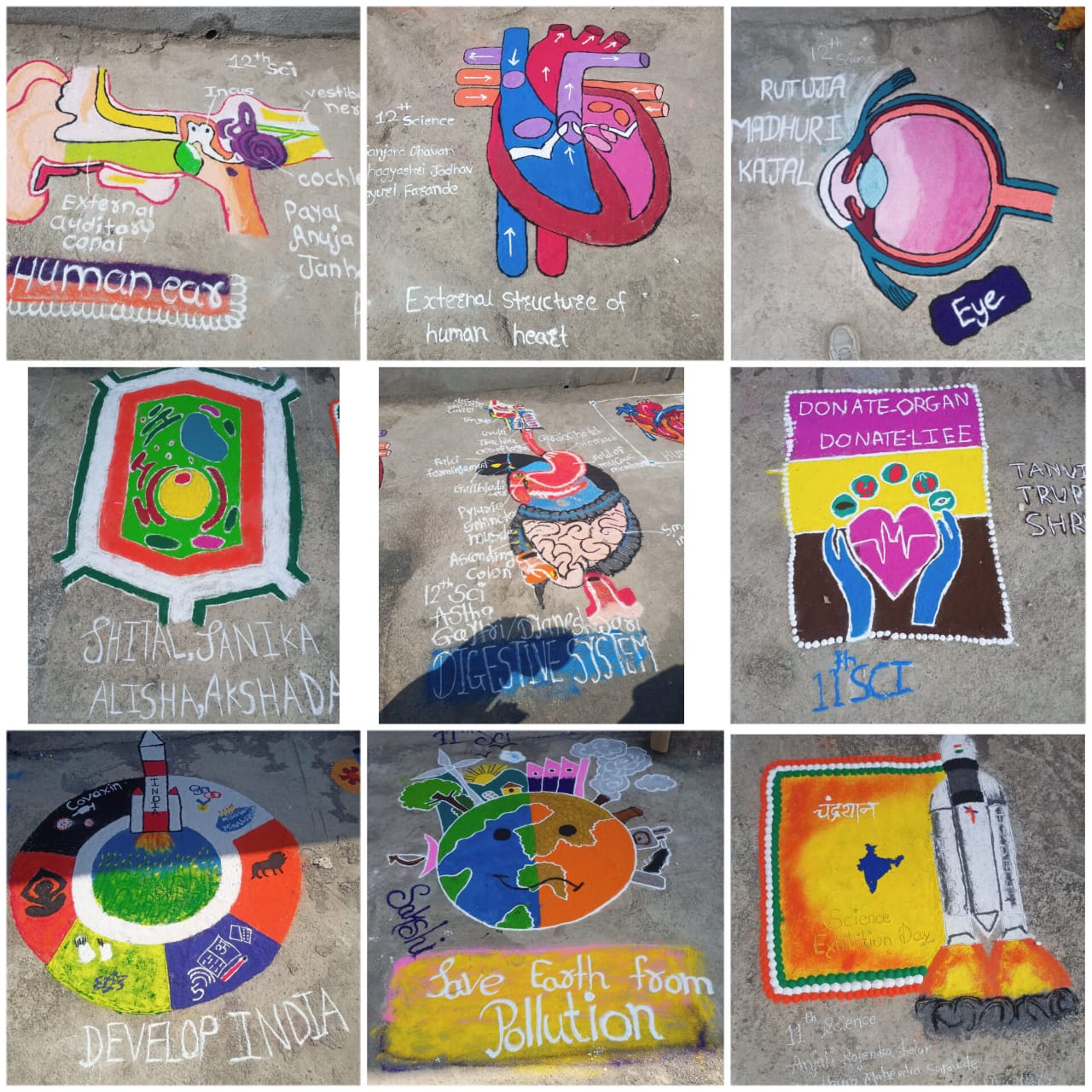 यामध्ये इयत्ता पाचवी ते बारावीच्या च्या एकूण चारशे विद्यार्थ्यांनी सुबक विज्ञान रांगोळीचे रेखाटन व उत्कृष्ट प्रकल्प सादर करून सहभाग घेतला होता.सदर विज्ञान प्रदर्शनामध्ये, अपघात नियंत्रण प्रणाली, प्रदूषण नियंत्रण प्रणाली, पर्यावरण पूरक प्रणाली, व्यायाम व आरोग्य, आपत्ती व्यवस्थापन यंत्र प्रणाली,जल शुद्धीकरण प्रकल्प, सौरशेती, सेंद्रिय शेती, ठिबक सिंचन, रोबोट, स्वयंचलित टोल, चांद्रयान्, हायड्रॉलिक मशीन, शाररिक अवयवांचे कार्य आदी प्रकारचे प्रकल्प समाविष्ट होते